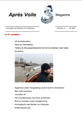 Après Voile nieuwe stijlIn het mei nummer nieuwe stijl vind je onder andere: -Het voorzitterschap van Evert Jochemsen -Verslag van de Nieuwjaarsbijeenkomst, Algemene Ledenvergadering en Koningstocht -Voorstel rondje…