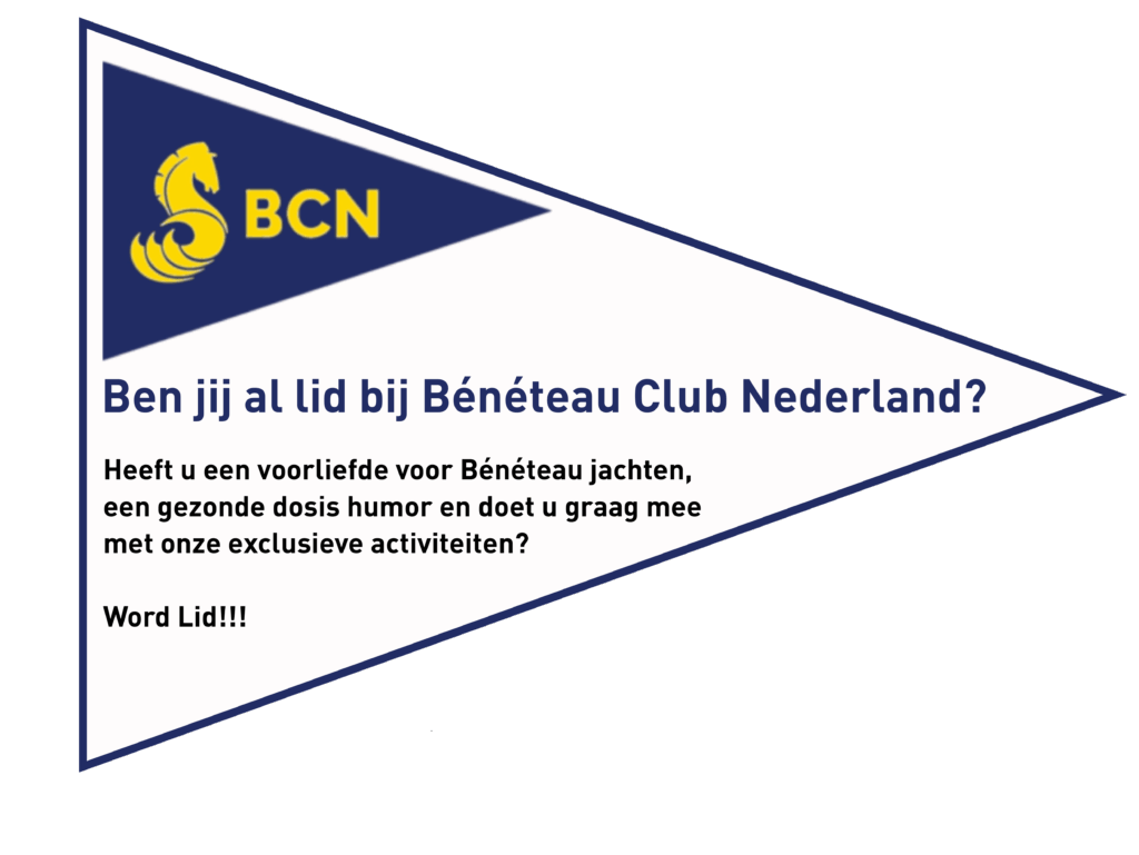 Wordt ook lid van onze gezellige vereniging en doe mee met onze fijne tochten, wedstrijden en exclusive activiteiten. Daarnaast zal je ervaren dat we veel kameraadschap en hulpvaardigheid bieden. Er zijn zeker leden die de tochten hebben gemaakt waar jij nog aan zit te denken en daar graag over willen vertellen. We zijn een vereniging met een overvloed aan kennis en tips voor en over alle Bénéteau schepen, ongeacht de maat, de samenstelling van de bemanning en het water waarop gevaren wordt.